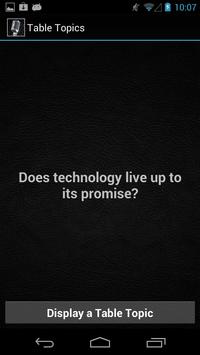 The Table Topics tool provides you with a good inventory of topics on the go. Every time you hit the Display a Table Topic button a new topic is displayed.