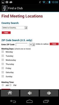 Visiting a new country, and wish to attend a Toastmasters meeting? SpeakApp includes the Find a Club page from Toastmasters International's website to help you locate clubs near you. Enter your location and meeting time preference to select among the available Clubs in your area.