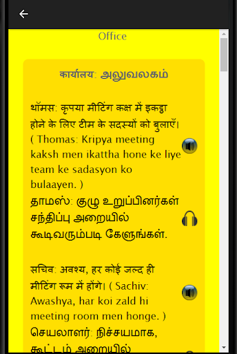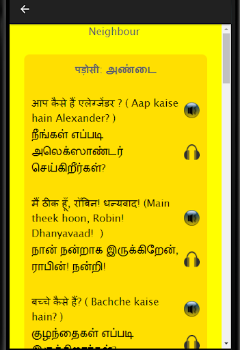 This language learning application can also be used by those Tamil speaking participants who are preparing for BPO, Call Center, Hindi Discussions and Debates as well as Hindi job interview. If you want to learn Hindi grammar, it is advised that you initially go through this application get yourself ready for your next assignment. If I want to learn Hindi, I should be approaching this application for the same and go through all the chapters. This app can help you learn Hindi fast using audio. It is easier to learn the language using Hindi conversation rather than through an Hindi Dictionary. Learning Spoken Hindi had never been easier. Exercises, vocabulary and business Hindi make this application a very special one.
