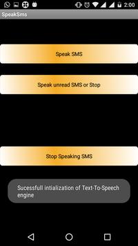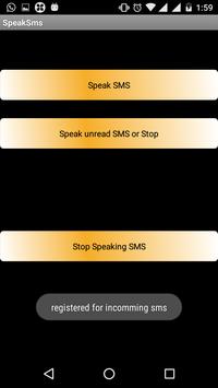 1. Just click "Speak SMS", Done! from now on, whenever you receive SMS it speaks to you.