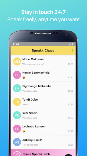 . Speakk lets you start chatting instantly with all your friends in your phonebook.