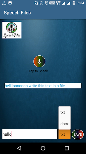 Speech Files** is supported on all Android devices above 4.4. Speech Files** allows you to create txt and doc files. You can also edit your Files in EditText.
