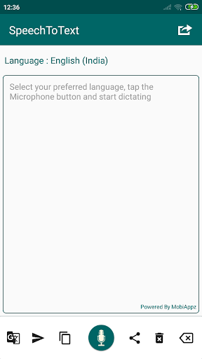 ✓ A simple to use app for dictating text which can be sent as an Whatsapp or SMS or Email or copied and pasted into another app.
