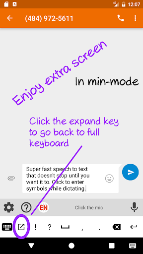 Speechkeys continuously cycles between being “disconnected” and "reconnecting", missing words in my dictation. The custom key functionality is buggy: a four-letter all-caps acronym I configured often has the first letter changed to lowercase. Having to constantly go back and correct these issues makes Speechkeys less productive than the default voice typing function of my Android phone. I purchased Speechkeys because of the claim that it stays in dictation mode. Looks like I wasted $6.99.