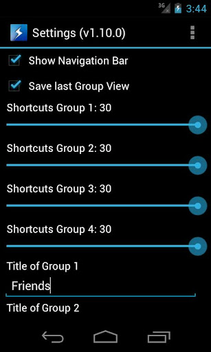 Q: Settings: What are the 'Shortcuts Group' sliders for?