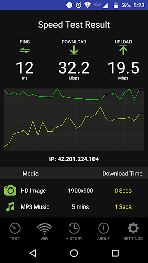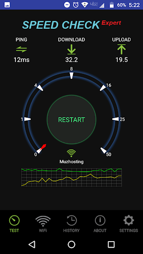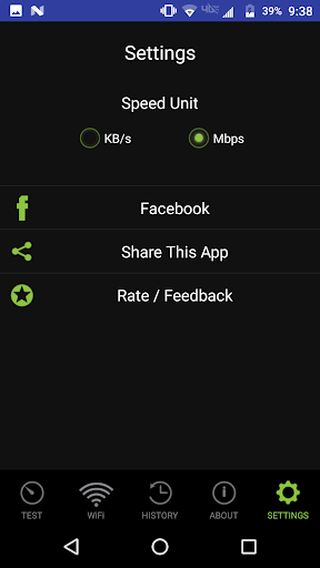 Excellent speed test showing speed, wifi condition if it is weak, fair, good or excellent, it comes with registered history of your speed test, the design are amazing, accuracy are superb, better than ookla, thanks developer