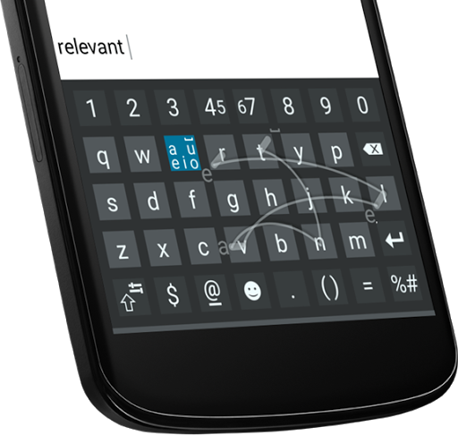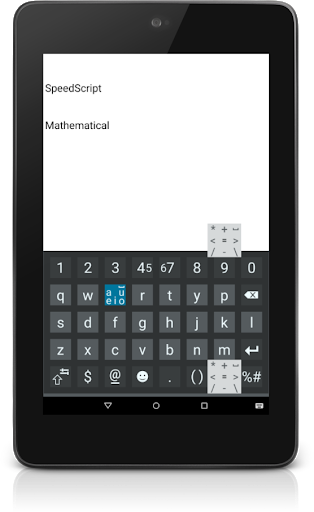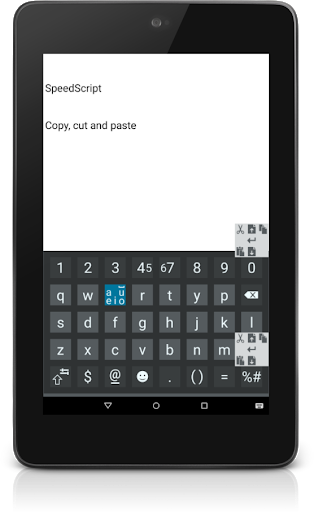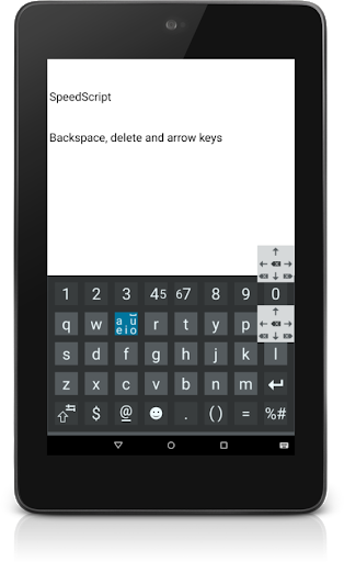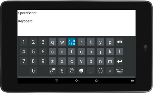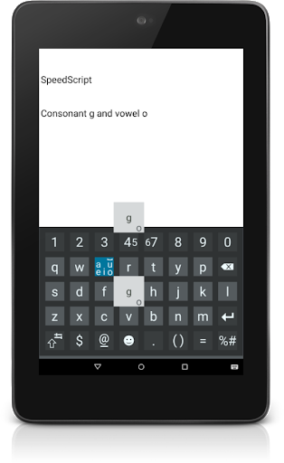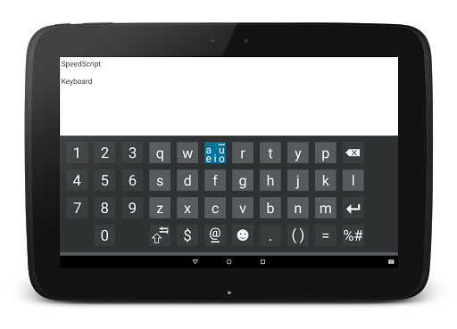 SpeedScript Keyboard strikes the golden mean by combining writing and typing on a touchscreen. In any language, vowels and spaces account for around half of all characters used. According to SpeedScript Keyboard logic, it must be possible to write these frequent characters quickly and easily without having to search for the right key and move the finger too far.