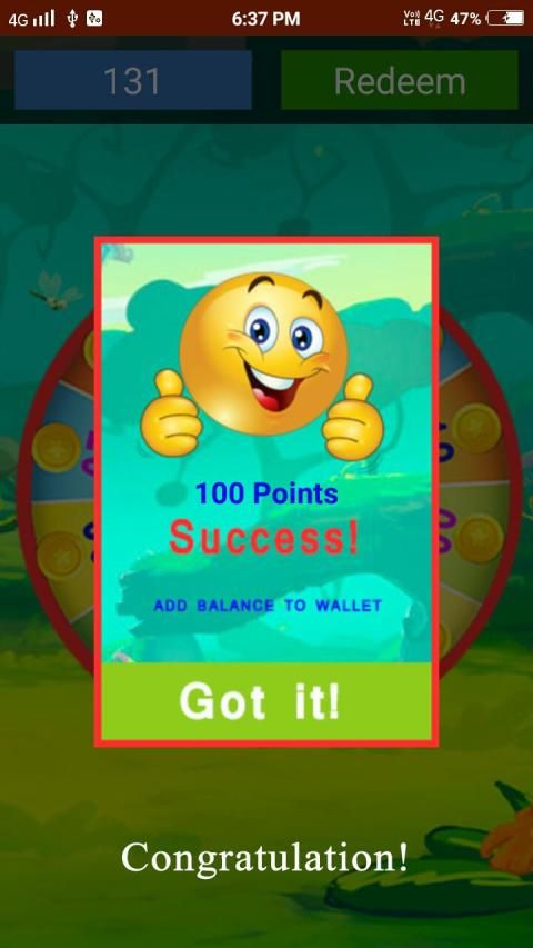 Tap on spin wheel and get points as per luck, after completion total points threshold you can redeem it with PayTm or PayPal cash wallet.