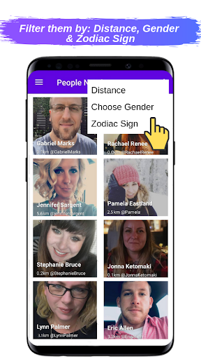 Find and meet new interesting people near you based on their age, gender and zodiac sign.
