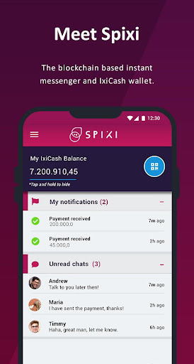 Spixi is a next generation instant messenger. It utilizes blockchain technology to provide a secure and private chat experience. All communication and messages use end-to-end encryption, which means that only the intended recipient can view your messages. Integrated wallet allow you to send payments within the chat as easy as sending messages.