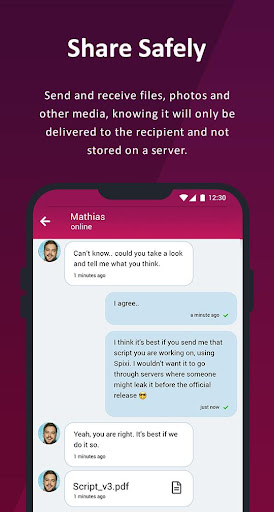 - Share your files securely, all data sent through Spixi is delivered directly to the recipient, there are no centralized servers for your data to pass through.