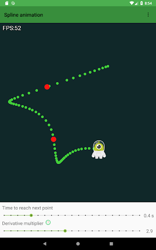 Spline Animator is a demo app that shows how to use a Spline curve to animate a simple sprite. Given a set of points