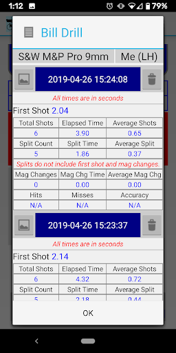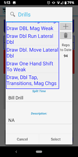 Splits allows you to define your own stages and drills, so that you can select them during your session and save the shot strings by stage or drill. With the release of 2.40, Splits supports identifying the weapon used and person performing the drill. The term weapon is used here because some have chosen Splits for archery and other devices.