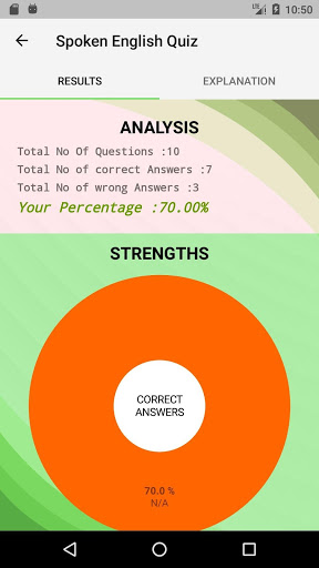 Spoken English skills are very important and necessary in this competitive world. English communication skills can be extremely useful if you are looking for new job opportunities, want to expand your business, know the culture of other people in the world. There are more than 400 million native English speakers in the world which make the English language as one of the important languages in the world. Spoken English Quiz application help you to test your skills, identify the problem areas and gain confidence in English Communication.