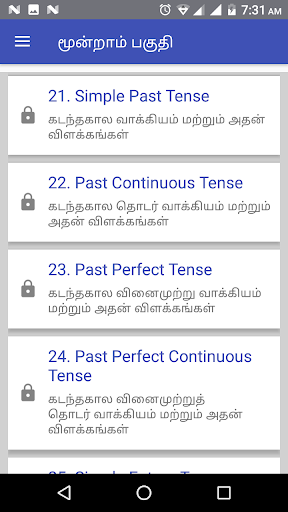 Easy and effective 50 days classes which will transfer to an English expert. This app includes all that you need to know to speak, write and understand English language completely. Classes feature grammar, frequently used phrases, when and where to use small letters, capital letters, form sentences and many more... It also includes alarm reminders and progress chart.