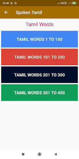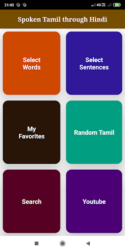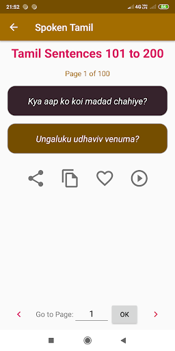 Learn Tamil language through Hindi. This app currently has 400 Tamil Words & 200 Tamil sentences with clean Audio.