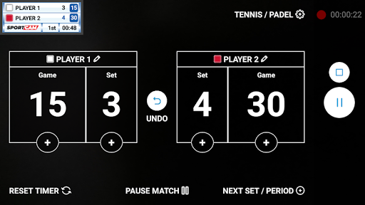You can easily start a live video stream, SportCam will embed a scoreboard to your stream which you will be able to add points by either touching the screen or using a smartwatch (android), the latest allowing you to be part of the match while streaming.