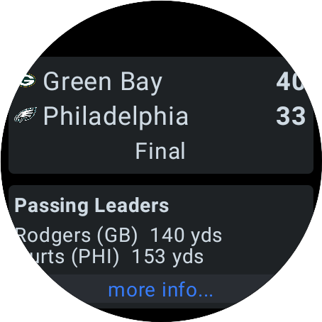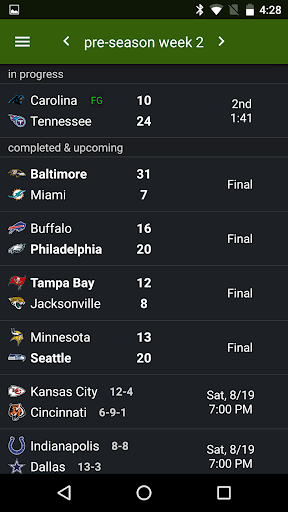 Get LIVE, FAST scores, stats and alerts for the NFL on your phone, tablet and our new Wear OS app!