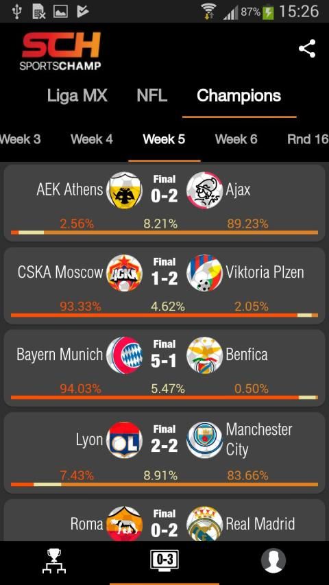 Know live scores from Champions League and Liga MX.