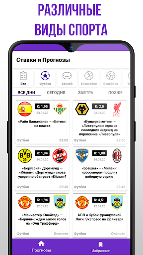 The information in the application is updated in real time, which will allow you to predict sports matches more accurately.