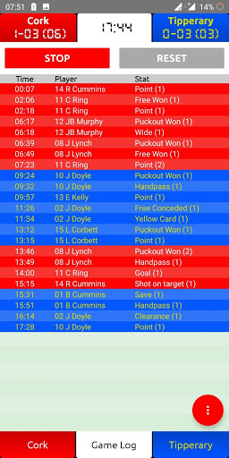 Sports Stats Recorder is a simple and intuitive app for recording scores and stats for team sports such as Gaelic Football, Hurling, Rugby Union, Rugby League, Soccer, Australian Rules Football and Field Hockey. At its most basic it can be used to time and record the scores for any game. It can also be used to record any number of user-defined stats for every player with the option of outputting the data to a file.