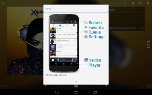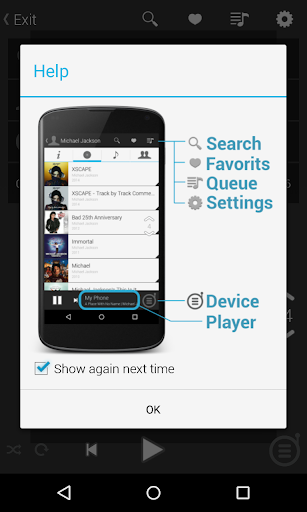 • Play your music and have access to artist and album information. Have instant access to all main features: Search, Favorits, Queue.
