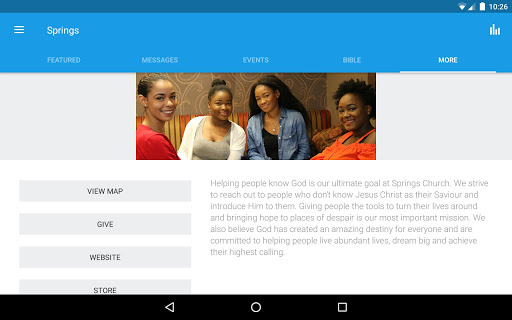 This free application features weekly video messages by Leon Fontaine and other speakers, details about Springs events, and more!