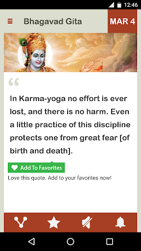 Sri Bhagavad Gita Daily brings the wisdom of Bhagavad Gita to you in a form of Mobile App, wake up every day, with Holy Scripture, starting today.