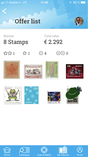 • Keep track of stamps you are searching or offering in the wish- and offerlist. Find other users in our community that search or offer the same stamp and write them directly in our chat.