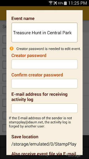 Event files created by an individual user can be shared with other users on online community sites or via E-mail. Event files created by companies, central or local governments, and private organization can be shared on respective websites or be distributed by uploading on [event notice] at Stamp Play.