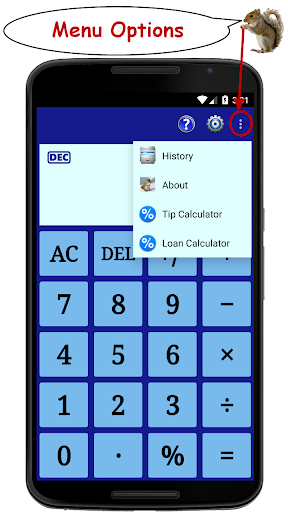 A simple, easy to use, calculator designed to be more functional than the default installed model - also includes a tip calculator and a loan calculator, both of which can be accessed from the menu - features of the main calculator include:
