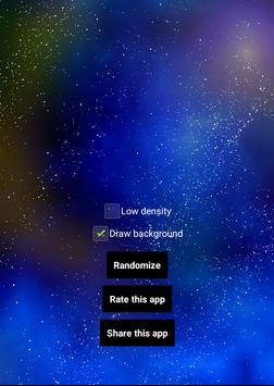 More than 5000 moving stars on your screen, fully randomized space. Tap the "randomize" button to create your own unique wallpaper!