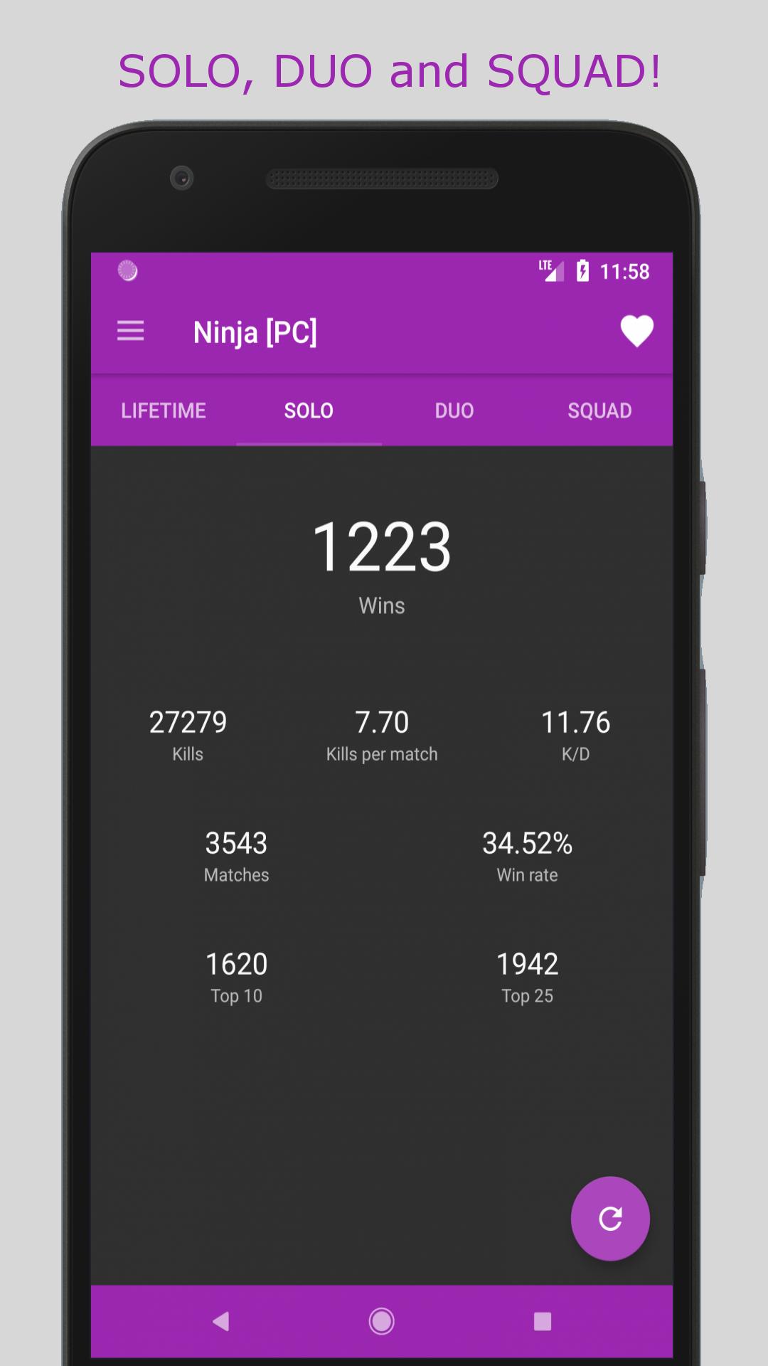 ?Check your performance in SOLOS, DUOS and SQUADS.