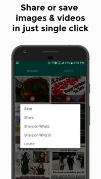 allows you to easily save or share status. All the images or videos you see in that app will be seen here in this app, then you can share it or keep your status.