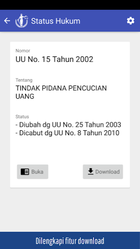 Aplikasi Status Hukum adalah aplikasi yang membantu pengecekan status keberlakuan Peraturan Perundang-Undangan di Indonesia. Mencakup Peraturan dari tahun 1945 s/d 2017 (selalu update).