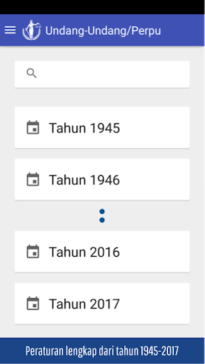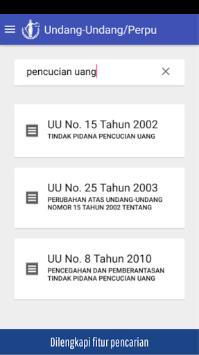 > Search = lakukan pencarian menggunakan kata kunci. aplikasi akan menampilkan semua peraturan yang berhubungan dengan kata kunci