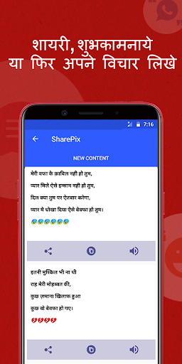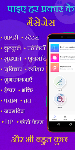 This app provides you latest Status,Jokes,Shayari & SMS in Hindi which you can be edited and use as Text on Photos.