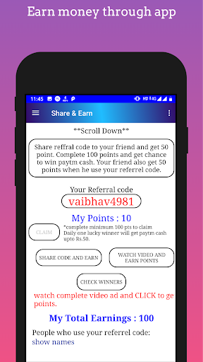 ✔ You can Share the app and Earn Paytm cash. (Just share your referral code.