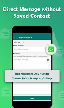 Sometimes it happens that you want to chat with someone without saving number in your contact list. This app will be right choice to overcome this problem. Direct Message feature allows you to start chat without saving number in your Contacts list.