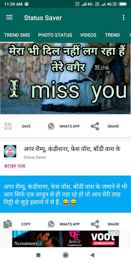 Status Saver for social media App, You can download photo images, Video. Daily trending sms, images with different categories.