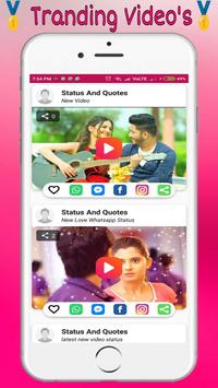 Status Video app is send to everyone more variety of short videos, video song status help to direct put video status on social meadia. you can easily downalod and share video on social apps. one of the best app for Video Songs Status (Lyrical Videos), DP and Status Video, Video Lyrics Status and video quotes. Video Status Song has a large collection of status video categories like Love Status, Miss You Stats, Funny Videos, Sad Video Status, Cute Status, Punjabi Video Song Status, and 30 Second videos.Velentine Day Status Video, Love Song Status Video, Christmas Status Video,Love Status Video, Miss you Status Video, Sad Video Status, Cute Status Video, Funny Status Video, New Year Status Video, Diwali Status Video, Newyear Status Video, Ganesh Chaturthi Status Video, Janmashtami Status Video, Velentines Day Status Video, Friendship Status Video, Rakshabandhan Status Video, Love Video Status.
