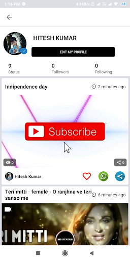 ✔ It has many features like Short Video status, image status etc and creator can create own account and upload a video and images.