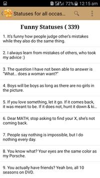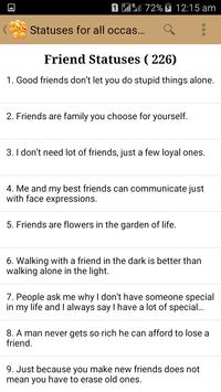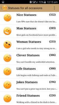 The best app and huge collection of statuses for all occasions for quick update status in Facebook, Twitter etc.