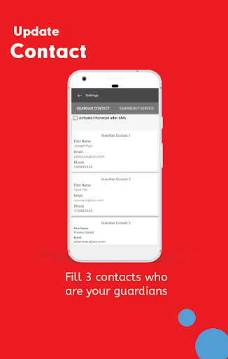 Once Installed, you can trigger an emergency alert to your Emergency Contact (you can define upto 3 contacts) by pressing the Emergency Button on the App (hold it for 10 seconds) or by pressing the Power button and display screen On and Off (5 times).
