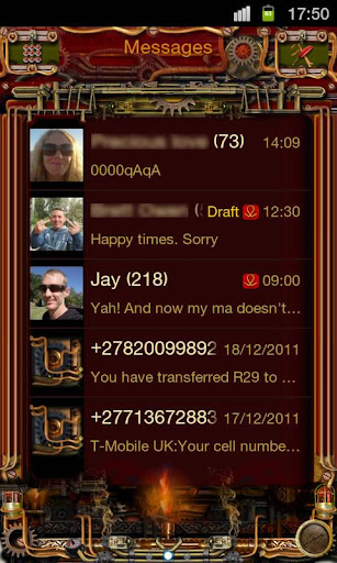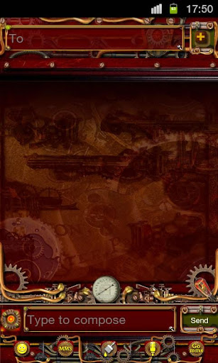 Fire up the message furnace with this gear-filled Steampunk theme for GOSMS Pro. Soot and oil are the delivery mechanism, for your messages when using this theme. Gears and cogs and ancient machines will liven up your phone with this grimy Steampunk theme.
