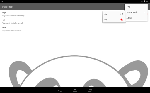 Additionally, the sound is pulsating, constant and a few tones quieter than music would be at the same volume level of your device, making it the least startling stereo tester.