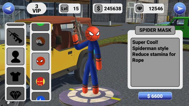 Stickman Rope Hero is an unknown gangster crime city hero and the whole city fears you.