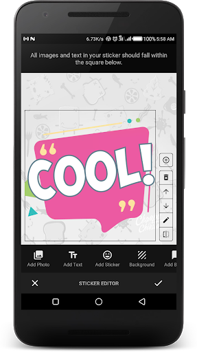 4. When you are done making your sticker in the sticker creator, click the ✔️button to save your sticker to the sticker pack.