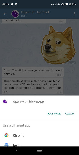 Recipe ONE: Export stickers packs from Telegram and import to WhatsApp