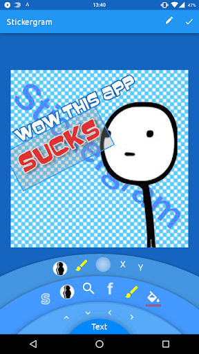Stickergram boasts a bold user interface, enabling you to modify a base image by cropping, adding text, and more.